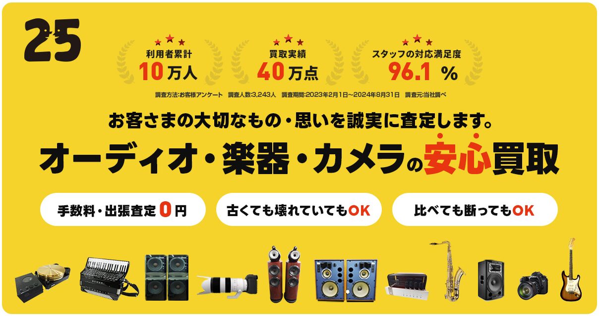 - 全国展開の大手買取店なら楽器の買取屋さん・福ちゃん・バイセルが高額査定