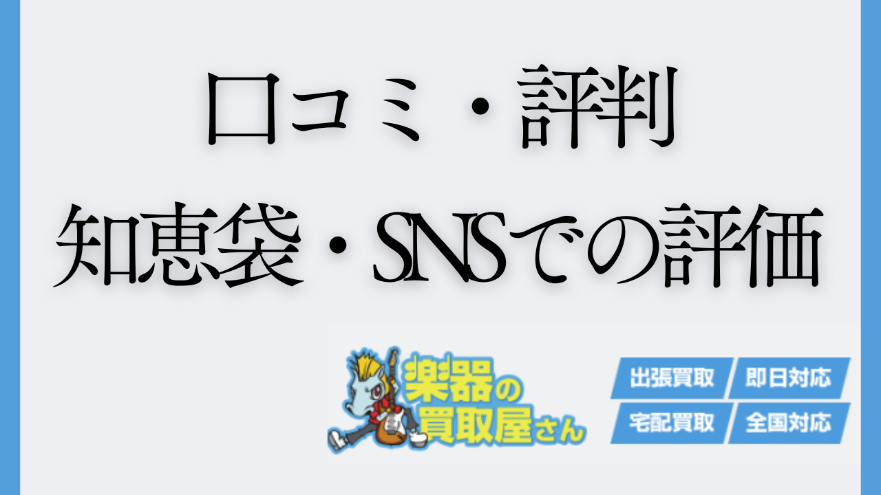 この記事では、Yahoo!知恵袋・みん評・ヒカカク・Googleマップ・X(旧Twitter)の口コミを徹底調査し、楽器の買取屋さんのリアルな評判をまとめました。