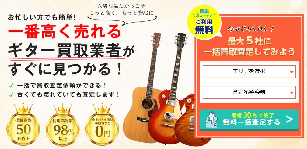 | こんな人向け | ギターの価値を正しく評価してほしい人 | 実績豊富な大手に任せたい人 | 運営元の信頼性を重視したい人 |