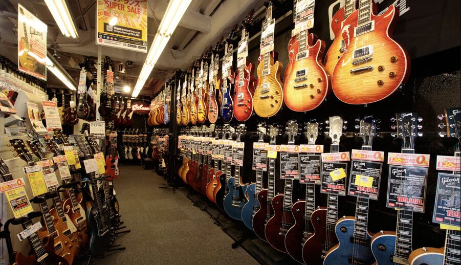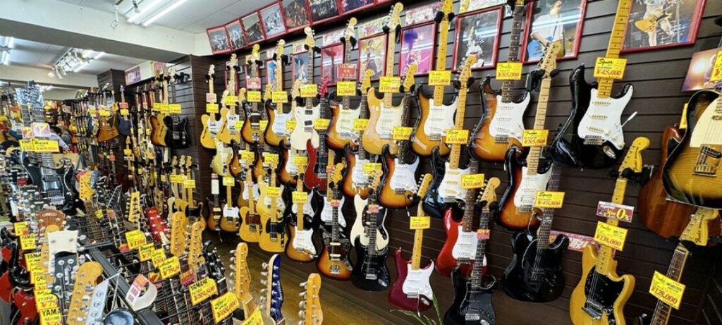 エレキギター・アコースティックギター・ベースと幅広いジャンルに対応した総合楽器店で、豊富な中古在庫を持つ強みを買取査定にも活かしています。