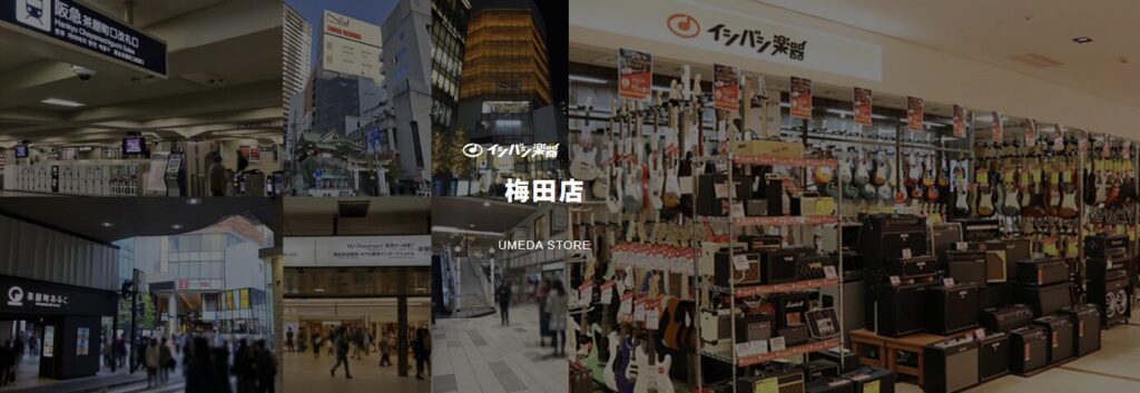 イシバシ楽器 梅田店は、阪急梅田駅から徒歩1分の好立地にある老舗楽器店です。